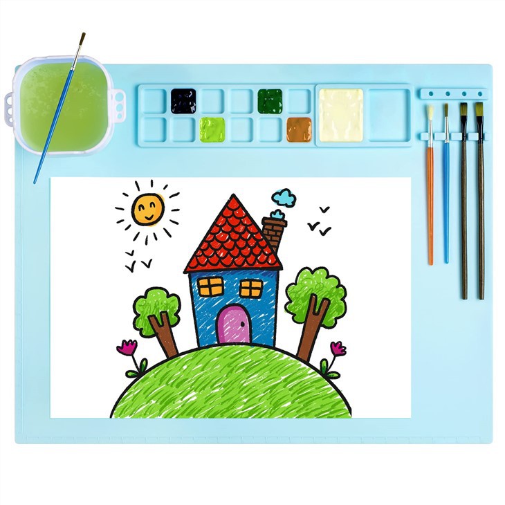 3. Thảm nghệ thuật silicon được cập nhật này có hai khay sơn tròn khá lớn để pha trộn hiệu quả, cốc làm sạch bàn chải có thể thu gọn và khả năng được sử dụng làm bảng màu và pallet. Thảm tạo hình silicon này có các vảy ở bên trái và bên dưới, thiết thực hơn cho quá trình sáng tạo nghệ thuật của bạn.